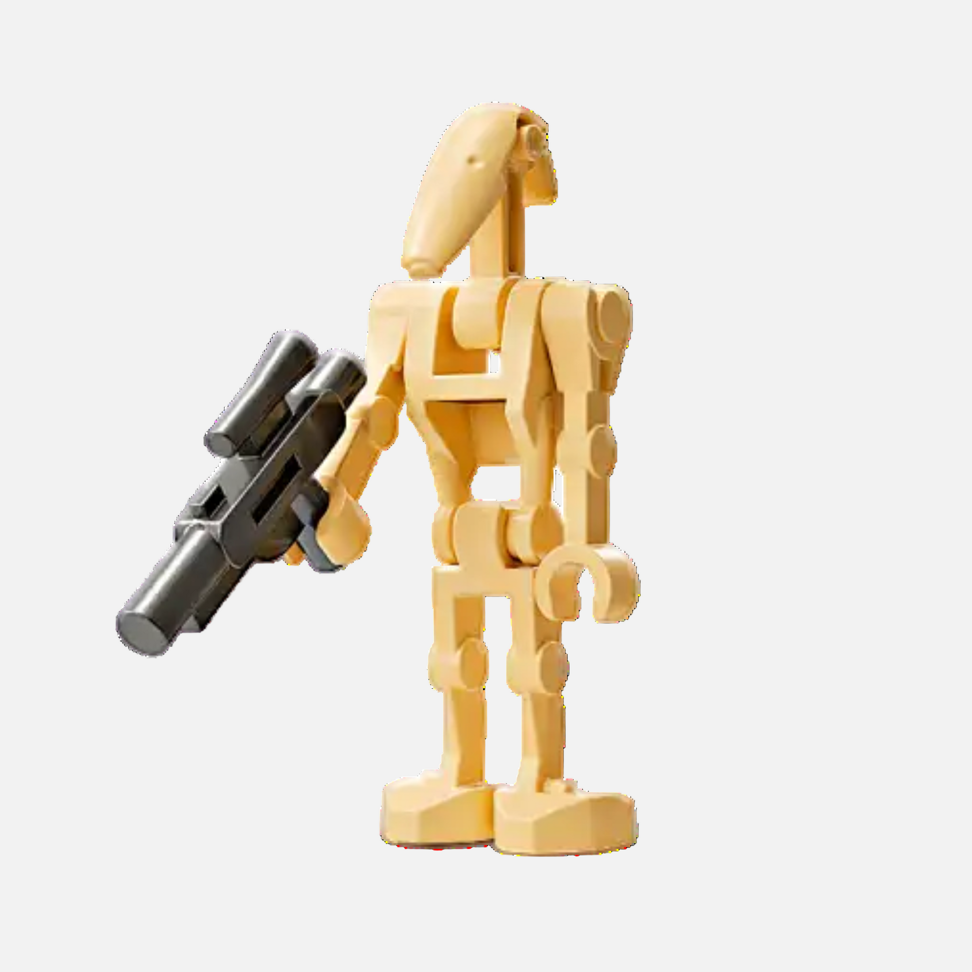 March into battle with the LEGO® Star Wars Battle Droid featuring two straight arms! This variation of the classic Separatist infantry droid is fully poseable and equipped to hold its blaster in either hand, making it a versatile addition to any droid battalion.