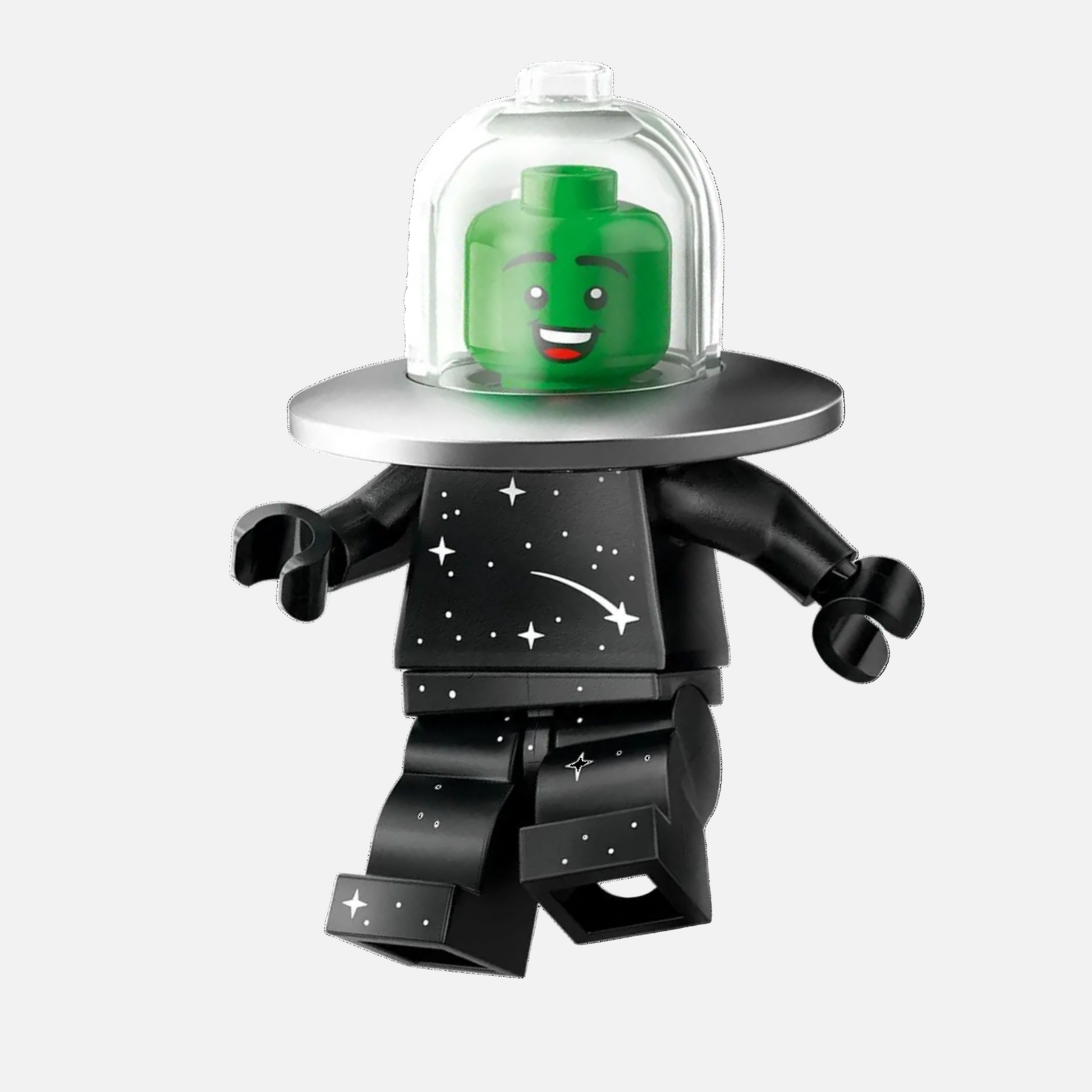 Bring some intergalactic fun to your collection with the Flying Saucer Costume Fan from LEGO® Minifigures Series 26 Space! Dressed in a whimsical UFO outfit complete with alien headpiece, this playful character is ready for parades, parties, or lighthearted sci-fi adventures.